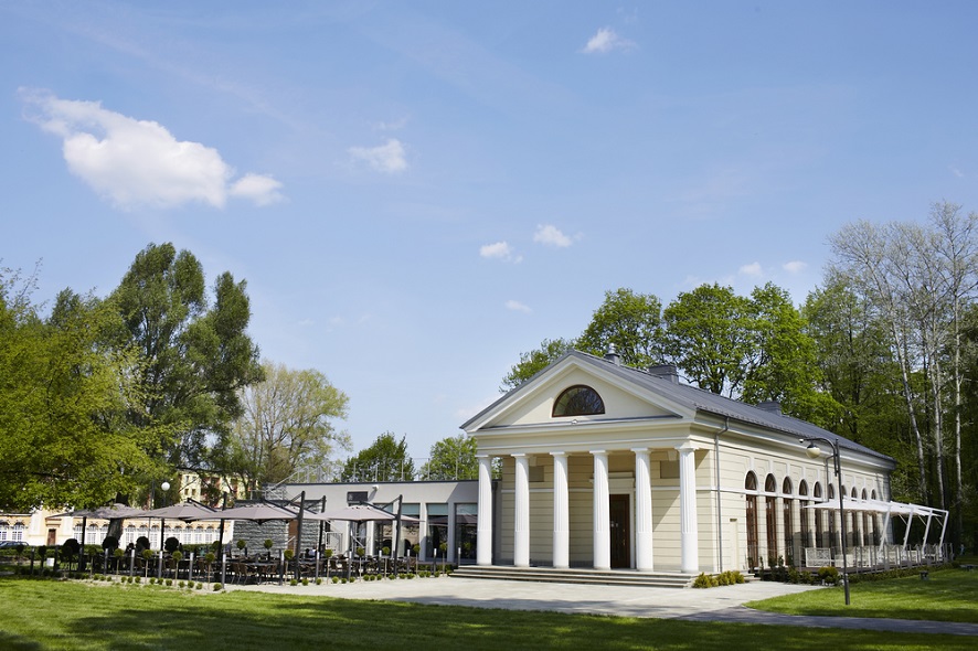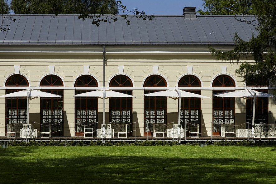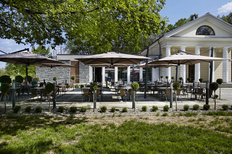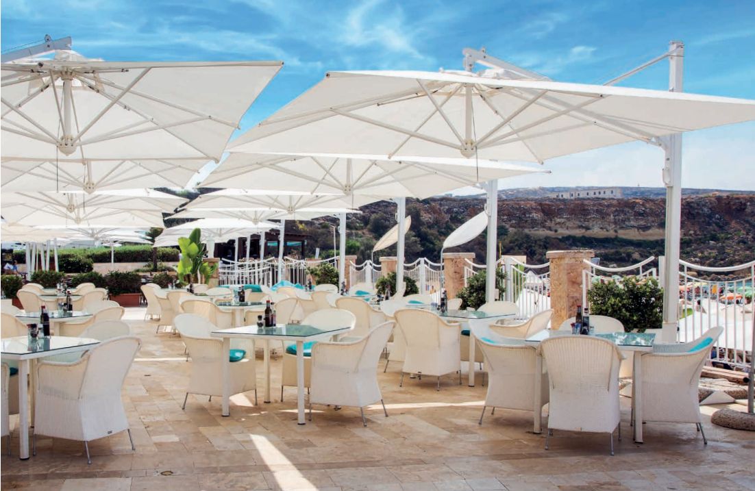 Einziehbares Öffnungssystem das über Tischen und Stühlen schließt