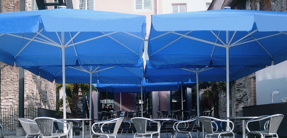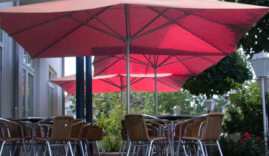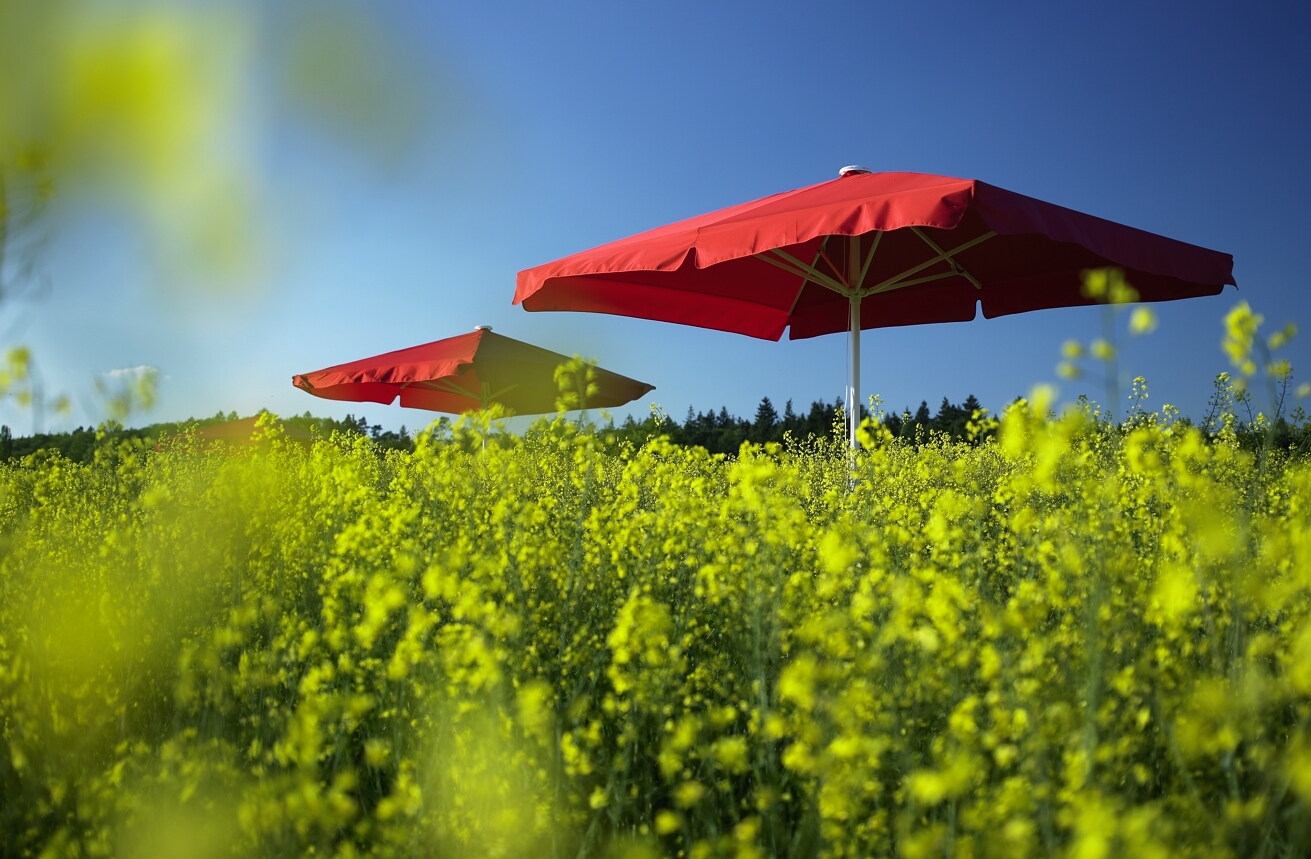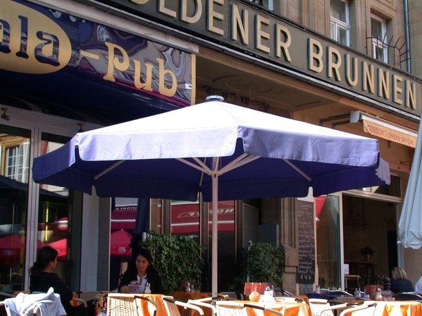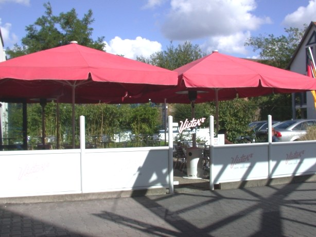 Im Sternteil werden die Tragarme mit 6 mm Aluachsen gelagert. Das Sternteil ist höchstpräzise aus ABS gespritzt, zweischalig und wird mit 4 Schrauben verbunden. Die Befestigung erfolgt am Standrohr mit M8 Schrauben und selbstsichernder Mutter. Der Hut mit Entlüftung hat eine extra große Form, ist stoßabsorbierend und schützt Gestell und Bespannung beim Anstellen an eine Wand, oder vor dem Umfallen. Lüftungsschlitze reduzieren den Wärmestau und die Windbelastung. Alle Bauteile werden miteinander verschraubt. So kann jedes Teil mit einfachem Werkzeug schnell ersetzt werden.